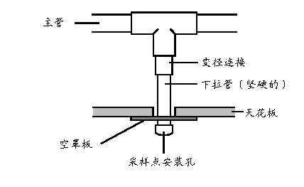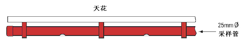 天花板上采樣時,也可利用天花板吊筋固定采樣管,或采用安置水平支架等方式固定。