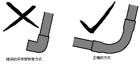 改變采樣管道方向時應用圓弧型彎頭,不要用直角彎頭。