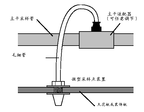 隱藏式采樣法:采樣管道主干放于天花板內,與主干連接并按規定間距隔開的毛細管穿過天花板,每個毛細管終端即為一采樣點。每個采樣點通氣口穿過被監測區。
