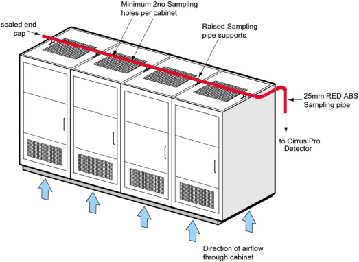 在某些場所,特別是計算機房等,可將空氣采樣網絡置于天花板內和地板下,監測整個監測區的空氣情況。機房地板下的采樣網絡還可用于監測電纜。