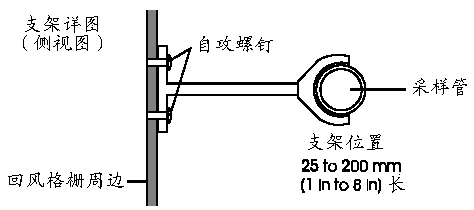 2.2.3.9在氣流流速大的地方,注意不要將采樣管貼著格柵表面放置,因為這樣可能導致采樣孔周圍出現一個低壓區,影響正常操作。應使用支架固定保證采樣管與格柵間距在25毫米與200毫米之間。